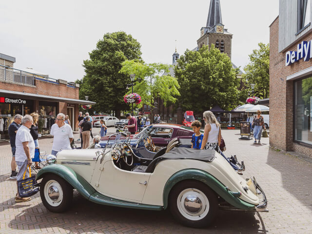 Iedereen is welkom om te komen kijken naar prachtige klassieke auto’s verdeeld over het gehele centrum. I