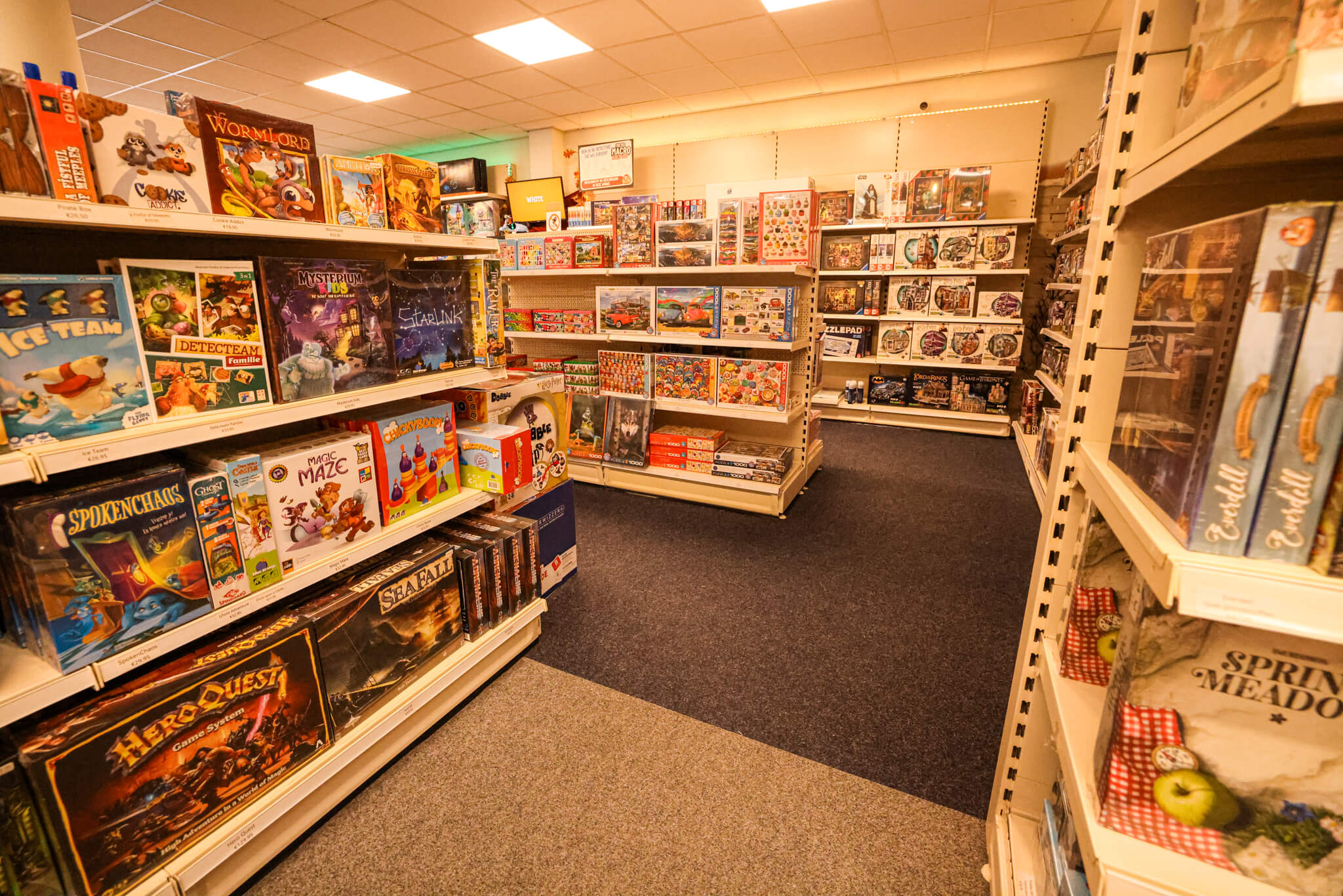 De winkel kent een uitgebreide collectie van bordspellen, D&D, Magic the Gathering, Smart Games, Pokémon, Warhammer en een grote hoek vol puzzels in uiteenlopende soorten en aantal stukjes. Een El Dorado voor iedereen die van spellen houdt.
